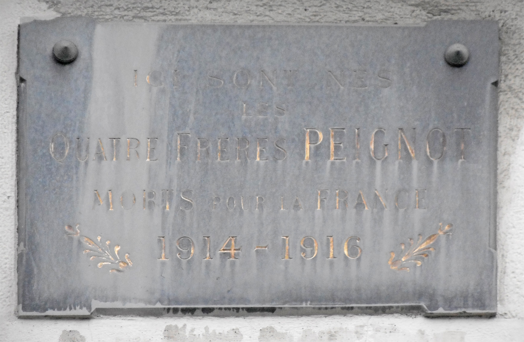 Ici sont nés les quatre frères Peignot morts pour la France 1914-1916