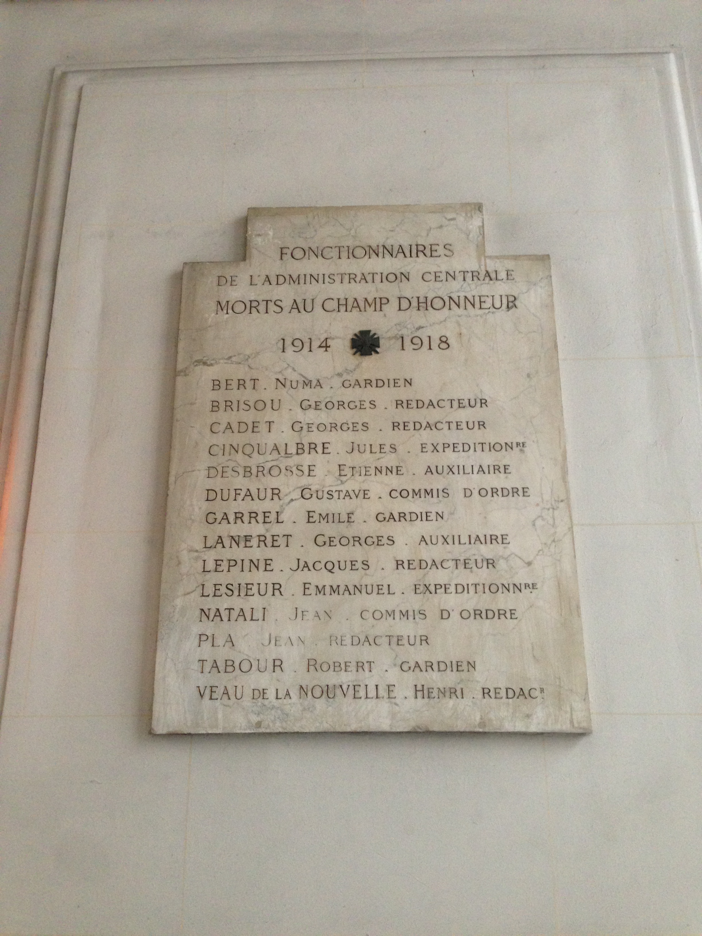 FONCTIONNAIRES DE L’ADMINISTRATION CENTRALE MORTS AU CHAMP D’HONNEUR / A LA MÉMOIRE DES MAITRES MORT