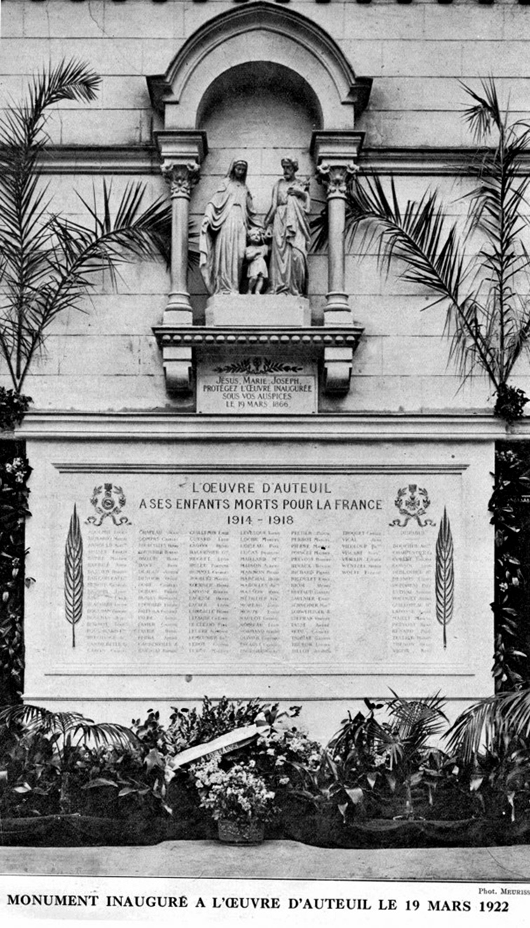 L'œuvre d'Auteuil, À ses enfants morts pour la France, 1914-1918